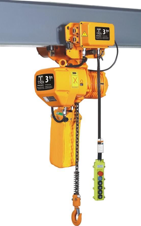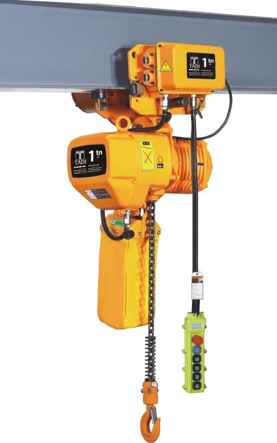 límites de la cadena, a fin de garantizar la seguridad.Acoplamiento con carro eléctrico Serie TCE sin necesidad de gancho y unificado eléctricamente mediante ficha de acople rápido.