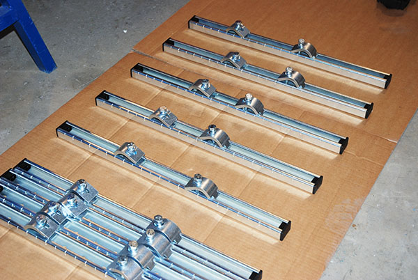 Envolvente en chapa de acero Galvanizado provisto de patín plástico atornillado a la chapa para impedir que la barra se salga del soporte.
