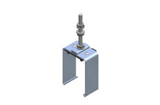 Compuesto de perfil perforado en acero galvanizado y 2 bridas de acero galvanizado para sujeción con tornillo, a viga normalizada en forma de IPN, IPE, HEB, HEA o HEM.