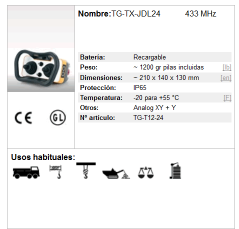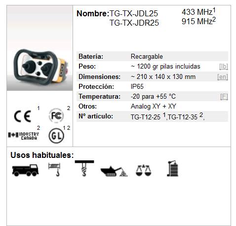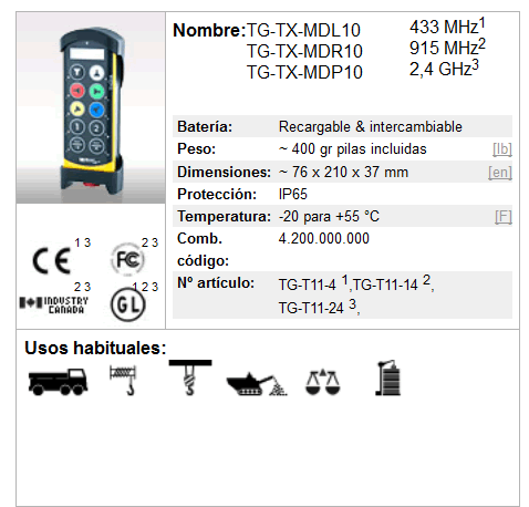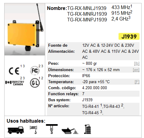 El sistema es seguro y útil si se desea controlar múltiples aplicaciones con el mismo transmisor, por ejemplo, varias grúas a la vez o independientemente. Por defecto, cada transmisor podrá controlar hasta 15 receptores. Posibilidad de comunicación en serie (CANopen, Profibus, Modbus/TCP, J1939), con salidas de relés, digitales y analógicas. Tiger G2 se encuentra disponible en diferentes frecuencias: 434Mhz, 915 MHz y 2,4 GHz.